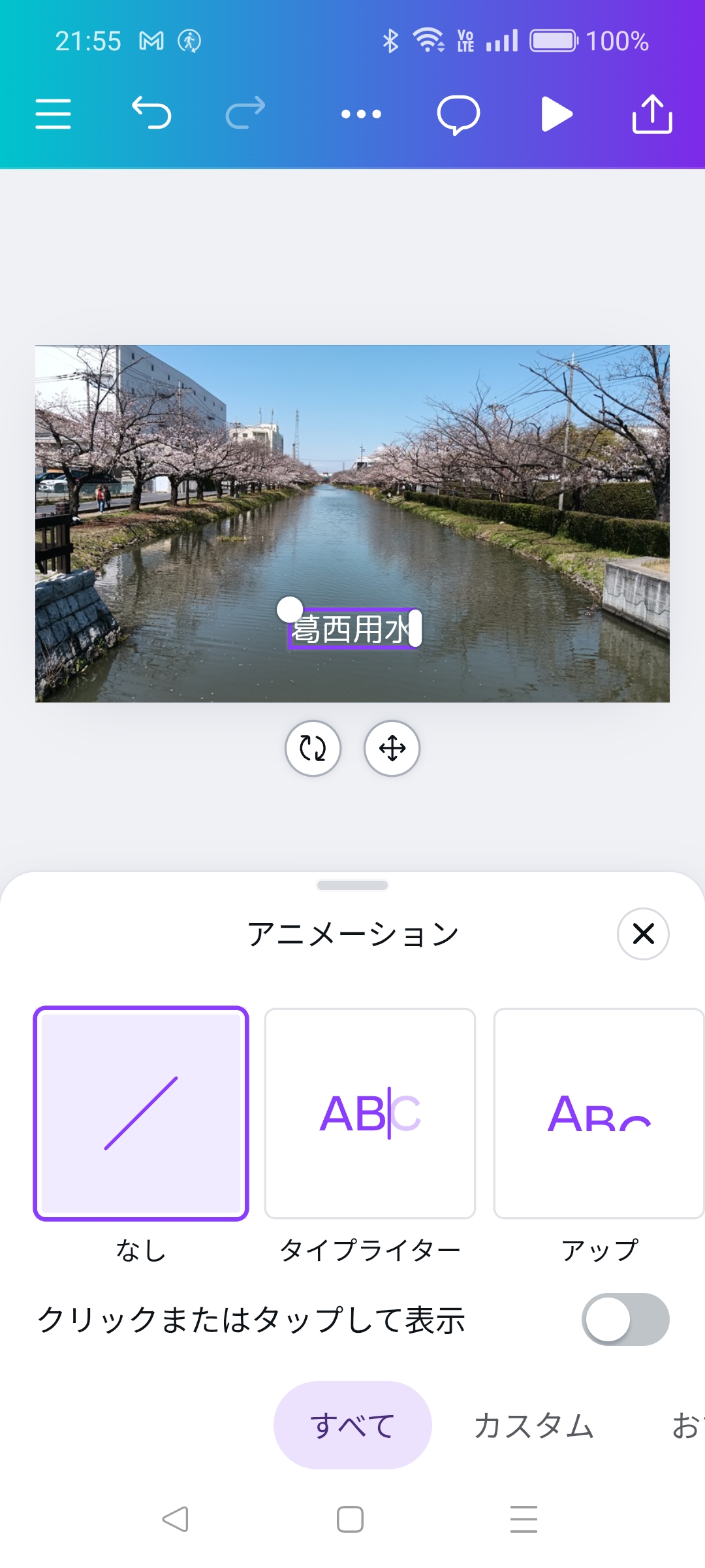 2. ツールメニューをスライドして「アニメーション」をタップする