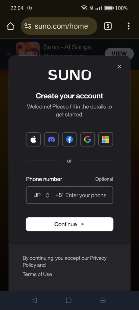 - ブラウザ(EdgeやChrome)でsuno.comにアクセスします