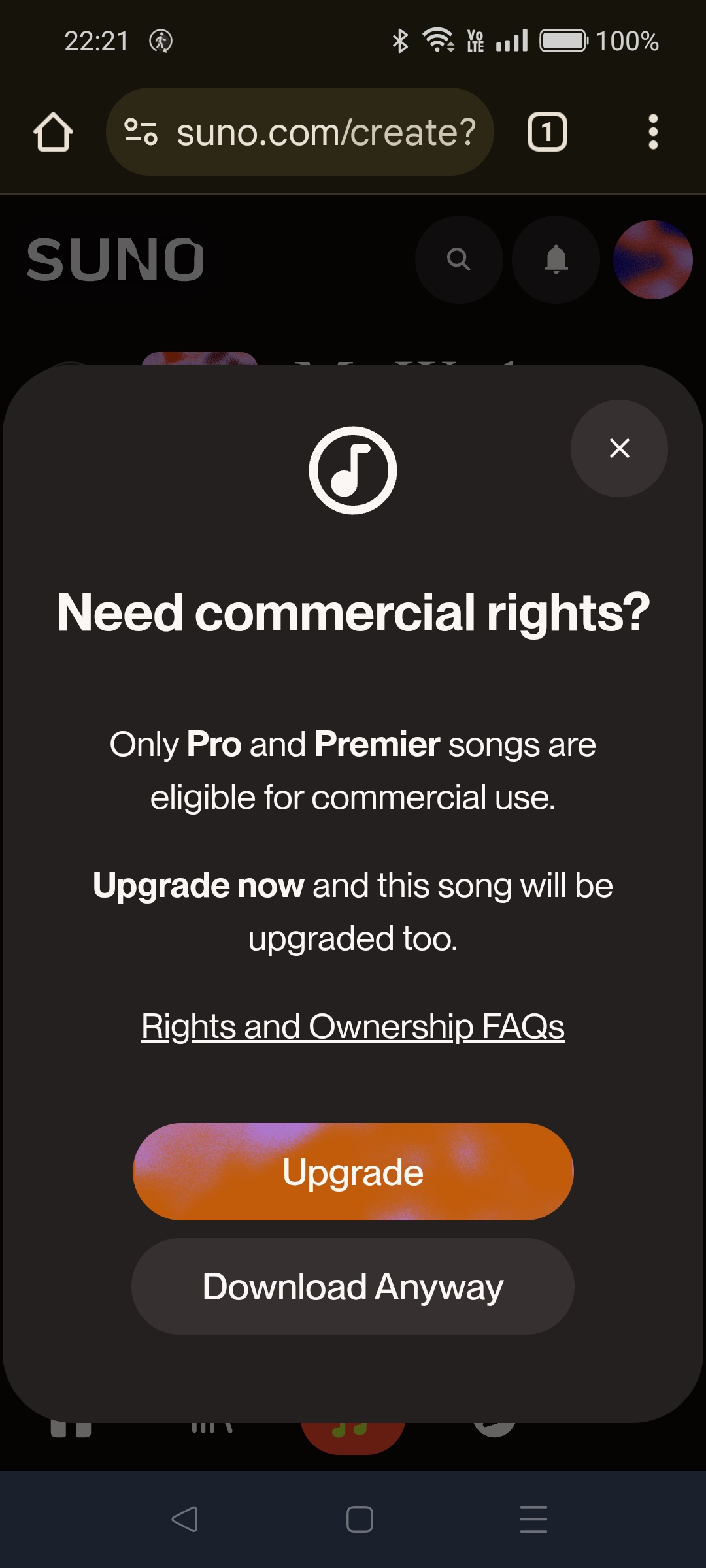 無料会員の場合、1日に作れる曲数に制限があります(頻繁に変わります)。執筆時点では1日10曲でした。