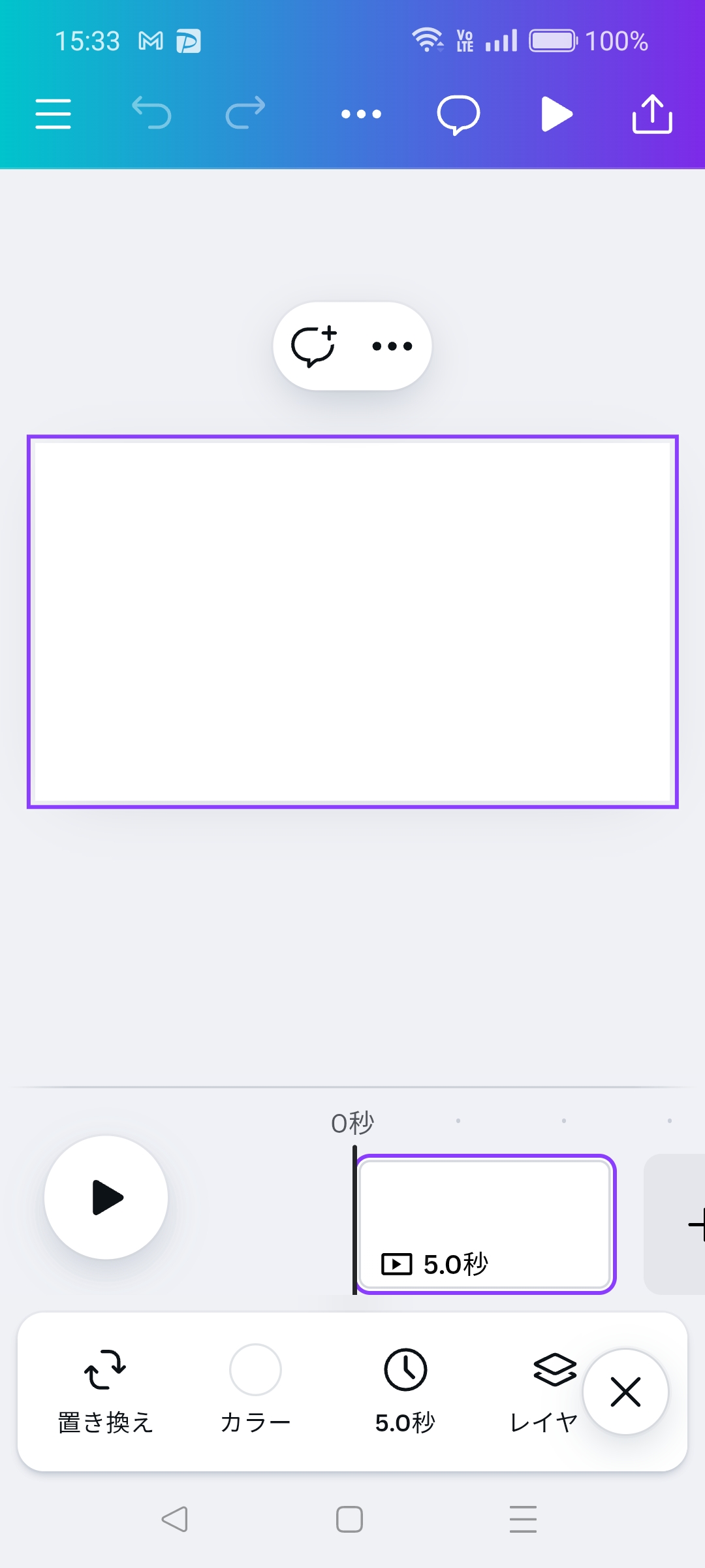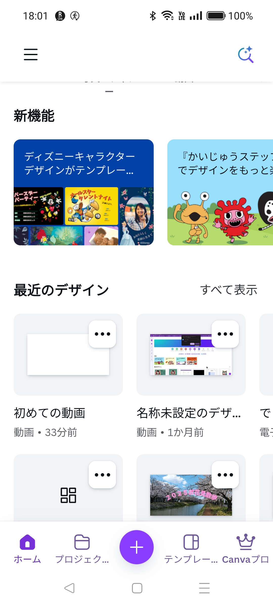 ホームにある「最近のデザイン」から「初めての動画」を選択しましょう。編集画面が開きます。