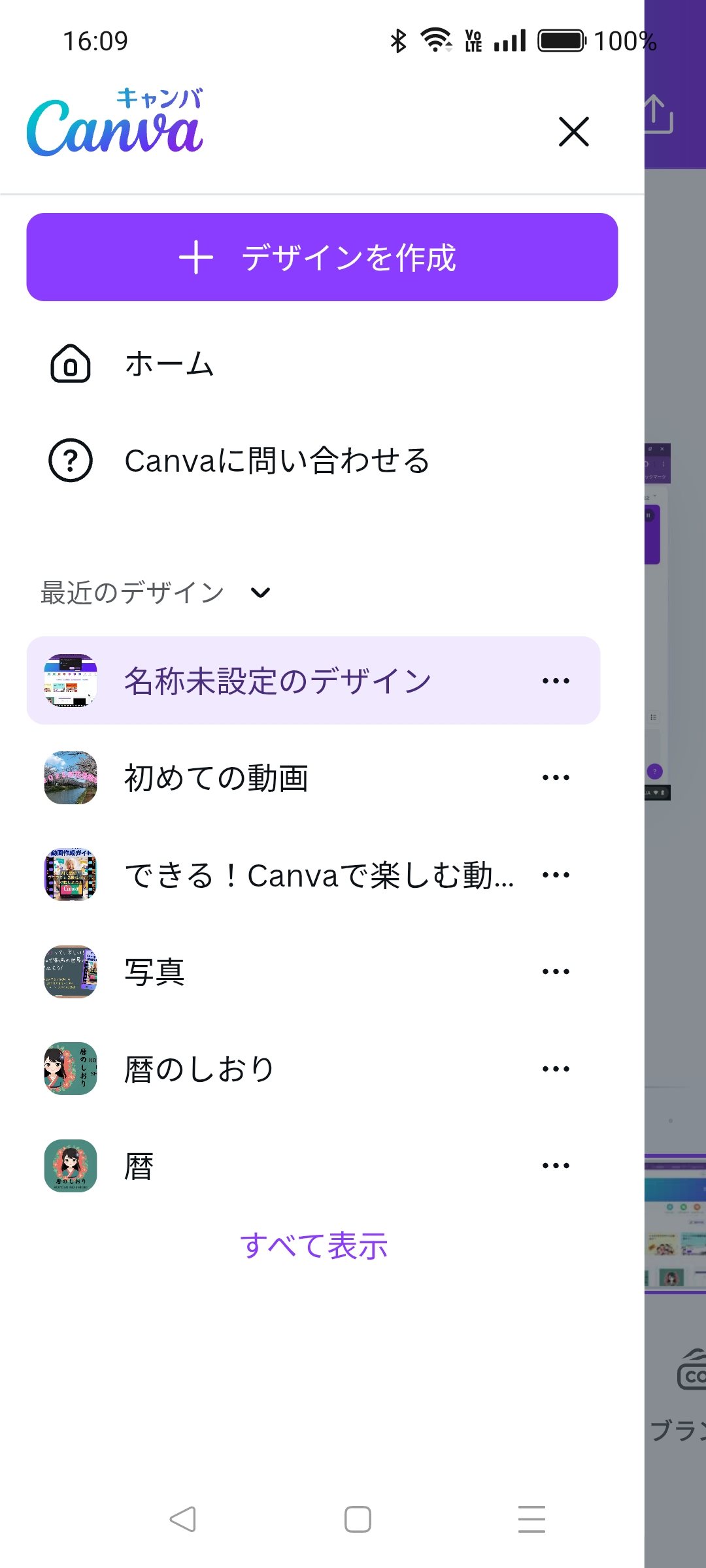 まずは編集画面からCanvaのTOP画面に戻りましょう。