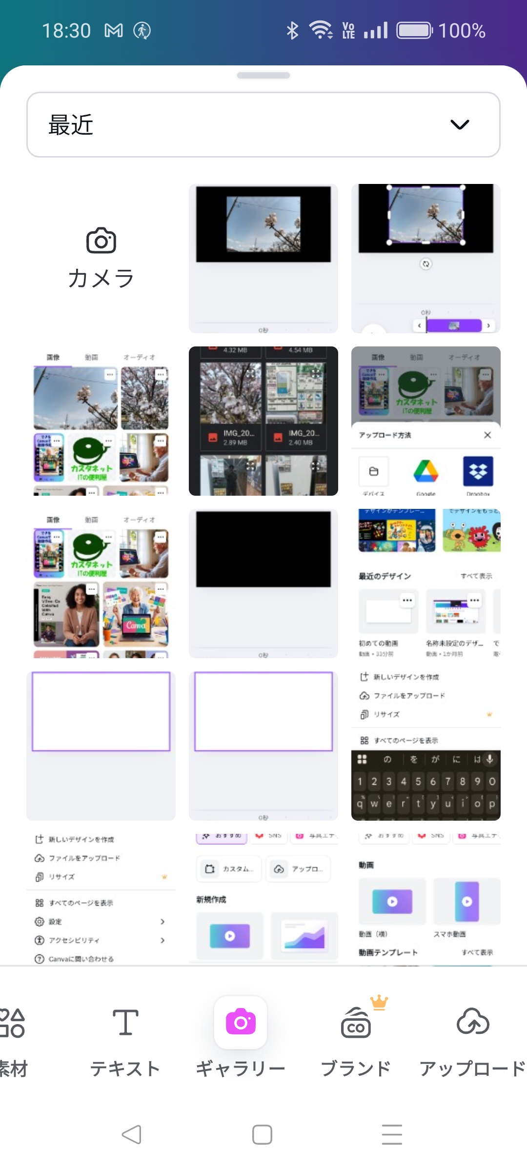 写真をcanvaにアップロードして写真を追加します。