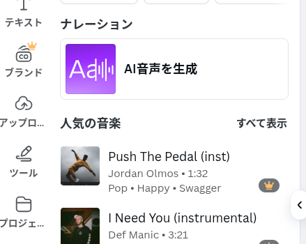 テキストを読み上げるAI音声を追加することができます。 AI音声を生成する